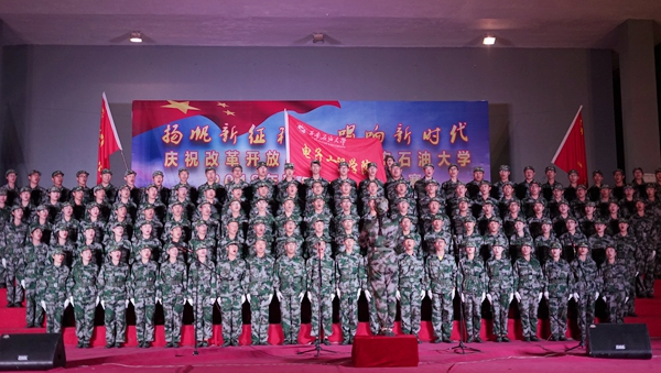 比賽在激昂的校歌《輝煌明天》中拉開帷幕,我校2018級新生用嘹亮的歌聲和精彩的表演表達了對學(xué)校的熱愛。歌曲《我為祖國獻石油》展現(xiàn)了石油工人天不怕、地不怕的豪邁氣概,激勵著一代代石油學(xué)子奮發(fā)向上;《中國軍魂》的經(jīng)典再現(xiàn)、《在燦爛陽光下》等諸多歌曲的演繹贏得了現(xiàn)場觀眾的陣陣掌聲和喝彩。最后,由軍訓(xùn)旅全體教官帶來的歌曲《當(dāng)那一天來臨》,充分體現(xiàn)出了中國軍人的壯志豪情和愛國情懷。