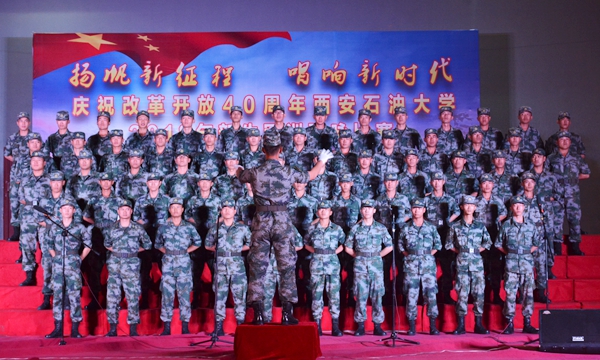 9月17日晚,我?!皳P帆新征程,唱響新時代——慶祝改革開放40周年西安石油大學(xué)2018級新生軍訓(xùn)歌詠比賽”在鄠邑校區(qū)西田徑場舉行。軍訓(xùn)領(lǐng)導(dǎo)小組組長、校黨委副書記張木,軍訓(xùn)旅司令部參謀長劉廣出席活動。學(xué)生工作處、保衛(wèi)處、校團委、教務(wù)處、鄠邑校區(qū)管理辦公室等相關(guān)部門負責(zé)人擔(dān)任評委,各院(系)軍訓(xùn)工作負責(zé)人及2018級全體新生一同觀看了比賽。