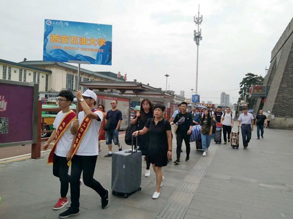 今年迎新接站組共抽調(diào)工作人員30名、學(xué)生志愿者30名,工作人員和學(xué)生志愿者實行24小時輪流值班。為了不漏接一個新生,工作人員一直堅守到7日晚上9:30分才撤離火車站。在接站組工作人員的共同努力下,從西安火車站運送新生51趟,共運送新生及家長2485人次,整個過程安全、平穩(wěn)、有序。
