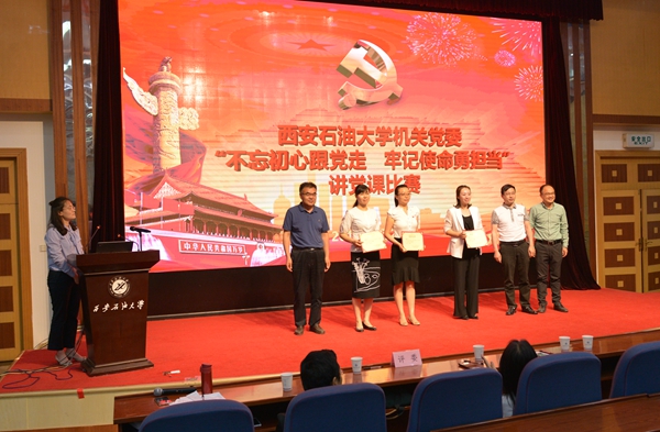 為深入學習宣傳貫徹黨的十九大精神,認真學習領會習近平新時代中國特色社會主義思想,根據(jù)組織部工作安排,機關黨委于5月25日下午在雁塔校區(qū)學術(shù)報告廳舉辦“不忘初心跟黨走,牢記使命勇?lián)敗敝v黨課比賽。學校部分院(系)級單位黨組織負責人擔任比賽評委,機關黨委全體黨員參加了活動。