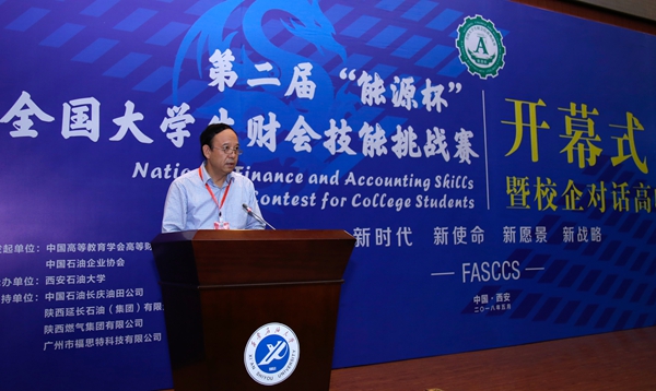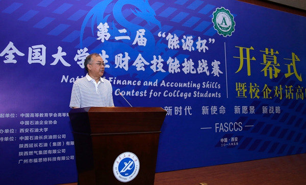 校黨委書記賽云秀在致辭中簡要介紹了我校的發(fā)展歷程和財會專業(yè)的特色優(yōu)勢,指出承辦第二屆“能源杯”財會技能挑戰(zhàn)賽是教育界、企業(yè)界對我校的充分信任,是我校進一步提升應用型財會專業(yè)人才培養(yǎng)水平的重要契機。他表示,全校師生一定會積極探索、勇于挑戰(zhàn),將“能源杯”辦成我國財會類專業(yè)建設經(jīng)驗交流的盛會,源源不斷地向社會輸送財會人才。