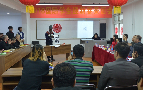 茶話會上,屈展校長向國際學生致以新春問候,詳細詢問了同學們寒假期間的學習、生活情況,并聽取了他們對學校留學生教育教學及管理方面的意見和建議。屈校長勉勵國際學生珍惜寶貴的學習機會,重視課內學習與課外實踐,在學習和實踐中多思考,力爭提出不同見解,創(chuàng)新學習方法,取得更好成績。