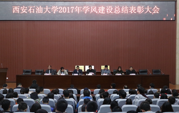 會上表彰了2016-2017年學(xué)風(fēng)建設(shè)年先進單位、國家獎學(xué)金獲得者、中國石油獎學(xué)金獲得者、優(yōu)良學(xué)風(fēng)班、先進班集體、主題班團會優(yōu)秀班級、素質(zhì)拓展優(yōu)秀團隊、三好學(xué)生、優(yōu)秀學(xué)生干部、文明宿舍、標(biāo)兵宿舍等先進集體和個人。石油工程學(xué)院黨委副書記張建高代表學(xué)風(fēng)建設(shè)年先進單位作了經(jīng)驗交流發(fā)言。計算機學(xué)院通信1502班王胤禛、經(jīng)濟管理學(xué)院ACA1602班曹璋穎兩位同學(xué)分別代表先進集體和先進個人作了發(fā)言。