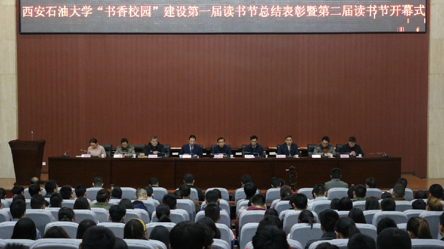 12月13日下午,我?!皶阈@”建設第一屆讀書節(jié)總結表彰暨第二屆讀書節(jié)開幕式在鄠邑校區(qū)弘石報告廳舉行。校黨委副書記張木、陜西省作家協會副主席李國平、陜西省新聞出版廣電局公共服務處副處長閆林海、陜西嘉匯漢唐圖書發(fā)行有限責任公司副總經理陳東出席大會。宣傳部、學生工作部、團委、圖書館等部門負責人,各院系主管學生工作負責人,全體學生工作干部,學生代表共400余人參加了大會。大會由學生工作部部長王宏衛(wèi)主持。
