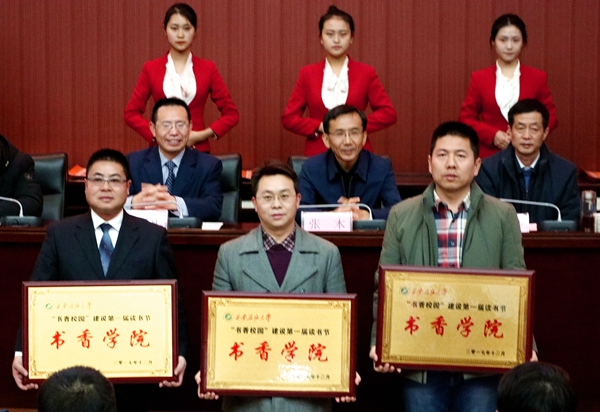 會上,張木副書記為嘉匯漢唐書城頒發(fā)了西安石油大學“書香校園”建設特別貢獻獎。宣傳部部長李國武宣讀了《西安石油大學“書香校園”建設第一屆讀書節(jié)表彰決定》;圖書館館長譚成仟宣讀了《西安石油大學“書香校園”建設“學生讀書形象大使”聘任決定》。與會領導為榮獲書香校園建設第一屆讀書節(jié)書香學院、書香班級、書香宿舍、閱讀標兵的集體和個人頒獎,為第二屆讀書節(jié)“學生讀書形象大使”頒發(fā)了聘書。校團委書記賈莉娜接受嘉匯漢唐書城為西安石油大學“書香校園”建設贈書。