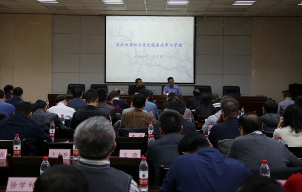梁忠民教授以《高校放管結(jié)合優(yōu)化服務(wù)改革與管理》為題,分別從“放管服”改革新政的主要精神、“放管服”對(duì)高校管理工作的新要求、完善高校二級(jí)學(xué)院管理的理論思考、高校各層級(jí)管理者的基本職責(zé)與角色等四個(gè)方面,對(duì)高校如何通過(guò)放管結(jié)合進(jìn)一步優(yōu)化服務(wù)改革與管理工作進(jìn)行了深入細(xì)致地講解。梁教授還指出了我國(guó)普通高校校院二級(jí)管理體制存在的問(wèn)題,并就完善高校二級(jí)學(xué)院的管理工作提出了獨(dú)到的理論思考。最后,梁教授分別以“高層要當(dāng)行家”“中層要當(dāng)專家”“執(zhí)行層要當(dāng)能手”為切入點(diǎn),進(jìn)一步闡釋了高校各層級(jí)管理者的基本職責(zé)與角色。