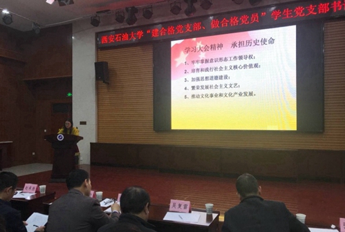 2.通讀原文系統(tǒng)學(xué)。黨的十九大開幕后,第一時間將《黨的十九大報告輔導(dǎo)讀本》、《黨的十九大報告學(xué)習(xí)輔導(dǎo)百問》發(fā)放各教職工、學(xué)生黨員,并要求各黨支部逐章逐句通讀報告全文,要求各支部書記帶領(lǐng)支部黨員精讀重點內(nèi)容、導(dǎo)讀主要詞匯、解讀精神熱點,加深對報告的學(xué)習(xí)領(lǐng)悟。