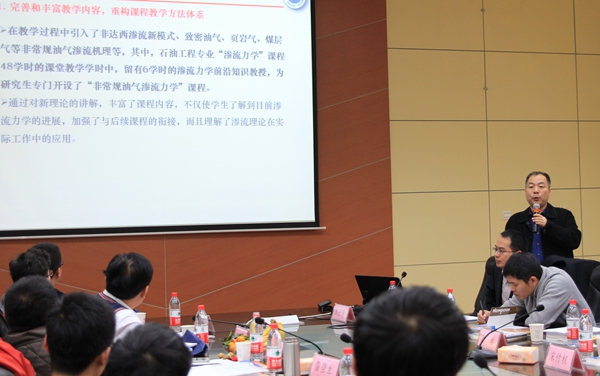 石油工業(yè)出版社高教分社社長徐秀澎介紹了此次研討會(huì)的組織過程。其他石油高?!皾B流力學(xué)”課程負(fù)責(zé)人介紹了本校“滲流力學(xué)”課程建設(shè)方面的相關(guān)經(jīng)驗(yàn)。大家圍繞“滲流力學(xué)”課程建設(shè)的已有做法、未來規(guī)劃及存在問題進(jìn)行了充分交流。