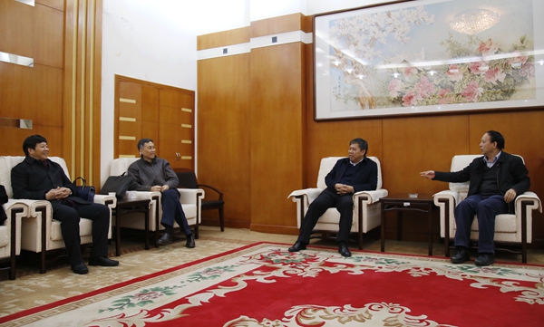 賽云秀書記、屈展校長會見郝芳院士(右二)、李根生院士(左一)