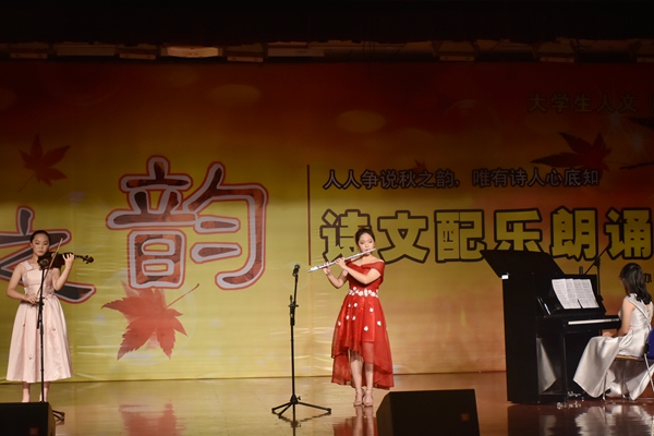據(jù)悉,“秋之韻”詩(shī)文配樂朗誦活動(dòng)已經(jīng)舉辦了十一屆,為上萬(wàn)名同學(xué)提供了展現(xiàn)風(fēng)采的機(jī)會(huì)?!扒镏崱痹谪S富校園文化的同時(shí),逐漸探索出了“院系推薦、專業(yè)教師導(dǎo)演、團(tuán)委搭臺(tái)、學(xué)生表演”的人文素質(zhì)培養(yǎng)模式。