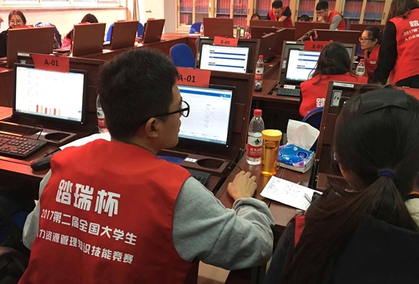 本次大賽是由全國(guó)人力資源開(kāi)發(fā)研究會(huì)主辦,由上海踏瑞計(jì)算機(jī)軟件有限公司提供全面技術(shù)支持,面向全國(guó)人力資源管理專(zhuān)業(yè)大學(xué)生舉辦的一項(xiàng)重要賽事。為了在比賽中取得優(yōu)異成績(jī),我校隊(duì)員從9月初就開(kāi)始訓(xùn)練,隊(duì)員們前期熟悉比賽規(guī)則和流程,然后通過(guò)反復(fù)實(shí)戰(zhàn)模擬對(duì)抗積累經(jīng)驗(yàn),最后分析總結(jié)形成自己的作戰(zhàn)戰(zhàn)略。比賽分為綜合實(shí)訓(xùn)賽、競(jìng)爭(zhēng)對(duì)抗賽和團(tuán)隊(duì)答辯賽三個(gè)環(huán)節(jié),我校隊(duì)員沉著應(yīng)對(duì),展示了良好的精神面貌和較強(qiáng)的專(zhuān)業(yè)技能。