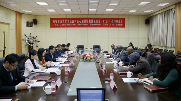 11月1日上午,尼日利亞石油科技發(fā)展基金會(PTDF)執(zhí)行秘書長貝魯·谷索(Bello Gusau)先生等一行6人來校訪問,雙方合作座談會在雁塔校區(qū)會議中心第一會議室召開。校長屈展會見代表團(tuán)一行,副校長李華出席座談會??萍继帯H交流與合作處、研究生院、國際教育學(xué)院有關(guān)負(fù)責(zé)人參加會議。