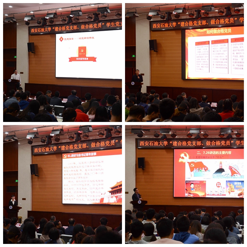 在黨的十九大勝利召開之際,為加強(qiáng)黨支部書記工作交流,落實(shí)“三會一課”制度,推進(jìn)“兩學(xué)一做”學(xué)習(xí)教育常態(tài)化制度化,10月23日、10月24日晚,我校分別在雁塔校區(qū)學(xué)術(shù)報(bào)告廳和鄠邑校區(qū)就業(yè)指導(dǎo)中心多功能廳成功舉辦了“建合格黨支部、做合格黨員”教工黨支部書記和學(xué)生黨支部書記講黨課比賽。校黨委副書記雷西合出席大賽并講話。校黨委各部(辦)、院(系)級單位黨組織部分負(fù)責(zé)人和馬克思主義學(xué)院教師代表擔(dān)任比賽評委。各院(系)級單位黨組織書記、副書記,全校各黨支部書記及委員和黨員代表觀摩了本次比賽。