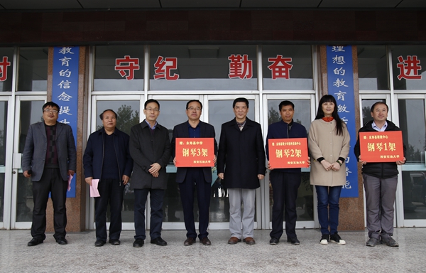 雷西合副書記一行首先來到永壽縣中學(xué),為永壽縣中學(xué)、永壽縣青少年校外活動(dòng)中心、永壽縣職教中心三家單位捐贈(zèng)了六架鋼琴等教學(xué)設(shè)備。雷西合副書記在捐贈(zèng)儀式上講到,教育扶貧關(guān)系長遠(yuǎn)、關(guān)乎根本,希望永壽縣中學(xué)等三家單位利用好這些教學(xué)設(shè)備,為同學(xué)們播撒下茁壯成長的種子。西安石油大學(xué)將繼續(xù)發(fā)揮高校的教育優(yōu)勢,讓更多的貧困學(xué)生感受到高校的關(guān)愛,以實(shí)際行動(dòng)幫助貧困學(xué)子走出困境、成長成才。