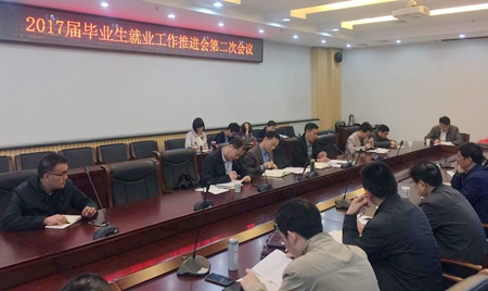 會上,各院(系)負責人圍繞2017屆畢業(yè)生就業(yè)工作的主要做法、成效、問題、下一步計劃等進行了交流匯報。就業(yè)指導中心主任王宏衛(wèi)就進一步學習貫徹有關(guān)就業(yè)政策、做好困難畢業(yè)生就業(yè)精準幫扶和畢業(yè)生離校教育等作了要求。就業(yè)指導中心副主任齊仲鋒對全校2017屆畢業(yè)生就業(yè)工作的進展情況和下一階段的重點工作進行了分析通報和具體安排。