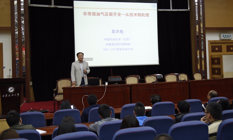 3月2日下午,中國石油大學(xué)(北京)二級(jí)教授葛洪魁在學(xué)術(shù)報(bào)告廳為我校師生作了題為《非常規(guī)油氣壓裂開發(fā)——從技術(shù)到機(jī)理》的學(xué)術(shù)報(bào)告。李天太副校長出席報(bào)告會(huì)。科技處負(fù)責(zé)人及300余名師生聽取了報(bào)告。