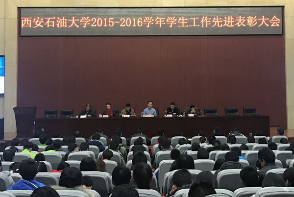 12月30日下午,我校2015-2016學年學生工作先進表彰大會在新校區(qū)圖書館弘石學術報告廳舉行。校黨委副書記雷西合出席大會。學生工作部、校團委、教務處、新校區(qū)管委會綜合辦等職能部門負責人、全體學生工作干部及學生代表400余人參加了大會。
