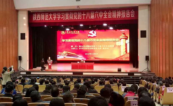 11月9日上午,校黨委組織全??萍壱陨项I(lǐng)導(dǎo)干部和學(xué)生代表共150余人,赴陜西師范大學(xué)(長安校區(qū))參加學(xué)習(xí)貫徹黨的十八屆六中全會精神報告會。報告會由十八屆六中全會精神中央宣講團(tuán)成員、中共中央黨史研究室主任曲青山擔(dān)任主講。
