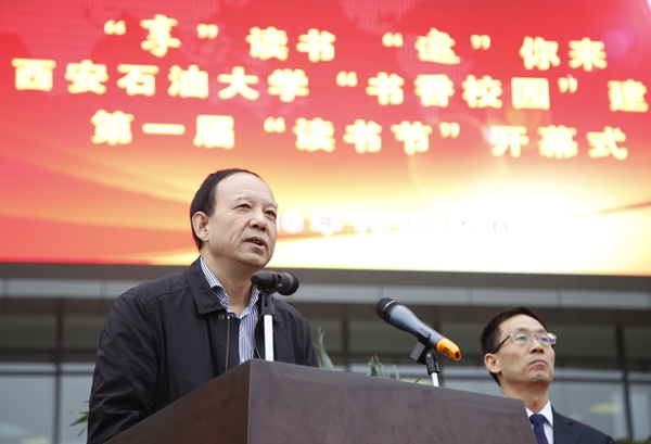 10月15日上午,我?!皶?shū)香校園”建設(shè)第一屆讀書(shū)節(jié)開(kāi)幕式在新校區(qū)圖書(shū)館南廣場(chǎng)隆重舉行。校黨政領(lǐng)導(dǎo)賽云秀、雷西合、陳軍斌,國(guó)家一級(jí)作家、省文聯(lián)副主席、省作協(xié)副主席高建群,我校人文學(xué)院教授王心劍,省圖書(shū)館、省新聞出版廣電局、嘉匯漢唐圖書(shū)有限責(zé)任公司相關(guān)領(lǐng)導(dǎo)、嘉賓出席開(kāi)幕式。我校相關(guān)部門(mén)、各院(部、系)負(fù)責(zé)人,全體輔導(dǎo)員及學(xué)生代表參加了開(kāi)幕式。副校長(zhǎng)陳軍斌主持開(kāi)幕式。