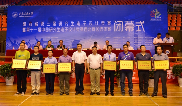 經(jīng)過兩天的激烈角逐,7月8日下午,陜西省第三屆研究生電子設(shè)計(jì)競賽暨第十一屆中國研究生電子設(shè)計(jì)競賽西北賽區(qū)選拔賽閉幕式在我校體育館舉行。陜西省政府學(xué)位委員會(huì)秘書長袁寧,我校校長屈展、副校長李天太,西安理工大學(xué)副校長李言,陜西省學(xué)位委員會(huì)辦公室主任權(quán)秋虎,陜西省研究生電子設(shè)計(jì)競賽秘書處負(fù)責(zé)人李青山,西安愛科賽博電氣有限公司經(jīng)理馮廣義等出席閉幕式,