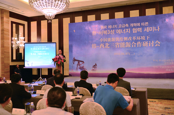6月7日上午,我校與韓國(guó)駐西安領(lǐng)事館在西安香格里拉酒店共同主辦了“中國(guó)能源供給側(cè)改革環(huán)境下 韓—西北三省能源合作研討會(huì)”。我校校長(zhǎng)屈展、副校長(zhǎng)陳軍斌,韓國(guó)駐西安領(lǐng)事館總領(lǐng)事李康國(guó)、韓國(guó)礦物資源公社西安代表處首席代表孫榮甫、韓國(guó)駐華大使館商務(wù)官金賢哲,西安市人民政府外事僑務(wù)辦公室副主任王小鎮(zhèn)、陜西省教育廳科技處處長(zhǎng)甘世平、陜西省教育廳國(guó)際合作與交流處副處長(zhǎng)文通、陜西省能源局石油天然氣處處長(zhǎng)黑喜生,華能陜西發(fā)電公司副總經(jīng)理顧可偉、陜西延長(zhǎng)石油(集團(tuán))公司副總經(jīng)理羅萬(wàn)明等出席會(huì)議。研討會(huì)由我校陳軍斌副校長(zhǎng)主持,李康國(guó)總領(lǐng)事和屈展校長(zhǎng)分別向中韓兩國(guó)嘉賓致辭。