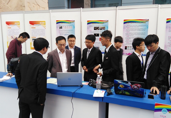 開幕式結(jié)束后,在校團委負責人的陪同下,雷西合副書記參觀了我校作品展區(qū),并與我校參賽師生親切交談,認真聽取了各個參賽作品的介紹,對作品的創(chuàng)新性和實用性給予了肯定。