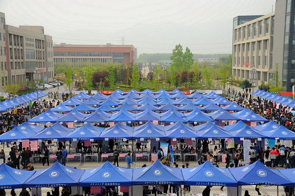 4月8日,我校2016屆畢業(yè)生春季綜合招聘會(huì)在新校區(qū)圖書(shū)館南廣場(chǎng)舉行。新疆準(zhǔn)東石油技術(shù)股份有限公司、西安渭北投資開(kāi)發(fā)建設(shè)集團(tuán)有限公司、遼河泰利達(dá)石油技術(shù)有限公司、河南省豫東石油有限公司、河北省電力建設(shè)第一工程公司、彩虹集團(tuán)新能源股份有限公司、寶雞中燃城市燃?xì)獍l(fā)展有限公司等270余家單位、500余名代表參會(huì),我校及兄弟院校畢業(yè)生共6000余人參加了招聘會(huì)。