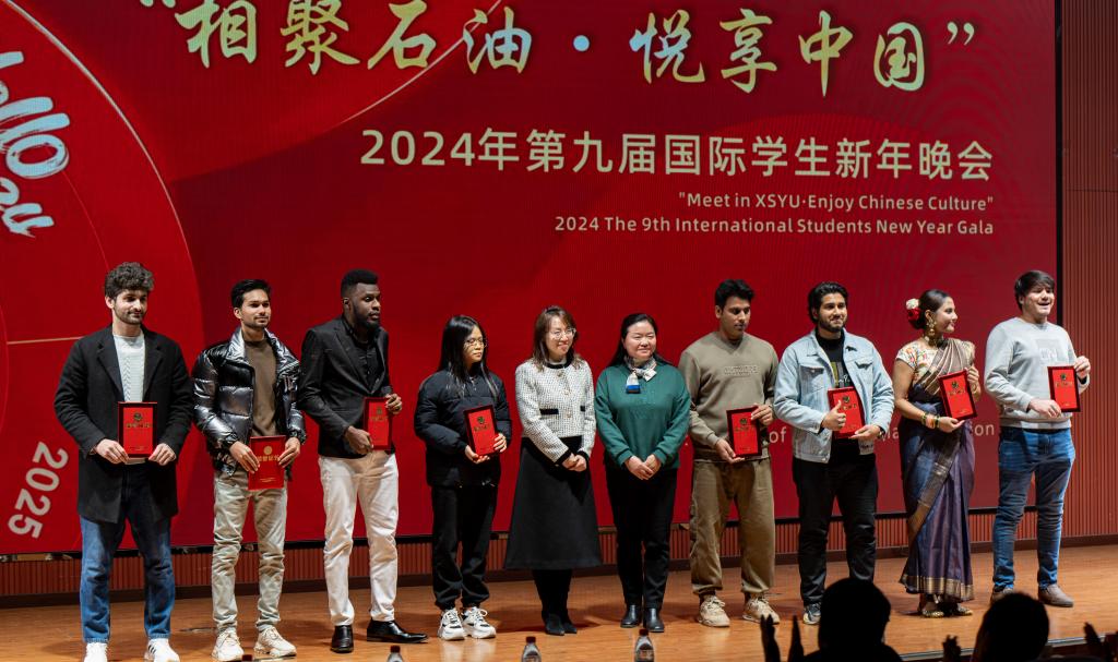 12月29日晚,由國際教育學院組織的“相聚石油?悅享中國”2024年第九屆國際學生新年晚會在鄠邑校區(qū)弘石學術(shù)報告廳成功舉辦。校黨委副書記張木、副校長程永清出席晚會,程永清致新年賀詞。西安市公安局出入境管理局、鄠邑區(qū)灃京路派出所等嘉賓,我校黨政辦公室(鄠邑校區(qū)管理辦公室)、研究生工作部、教師工作部、計算機學院、國際教育學院等部門和院(系)負責人,以及200余名國際學生歡聚一堂,共賞國際文化盛宴。