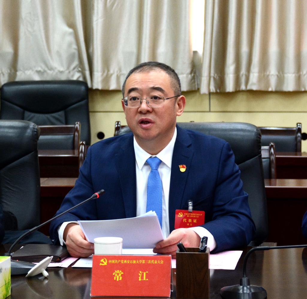 常江同志受中國共產(chǎn)黨西安石油大學(xué)第三次代表大會主席團委托主持會議。