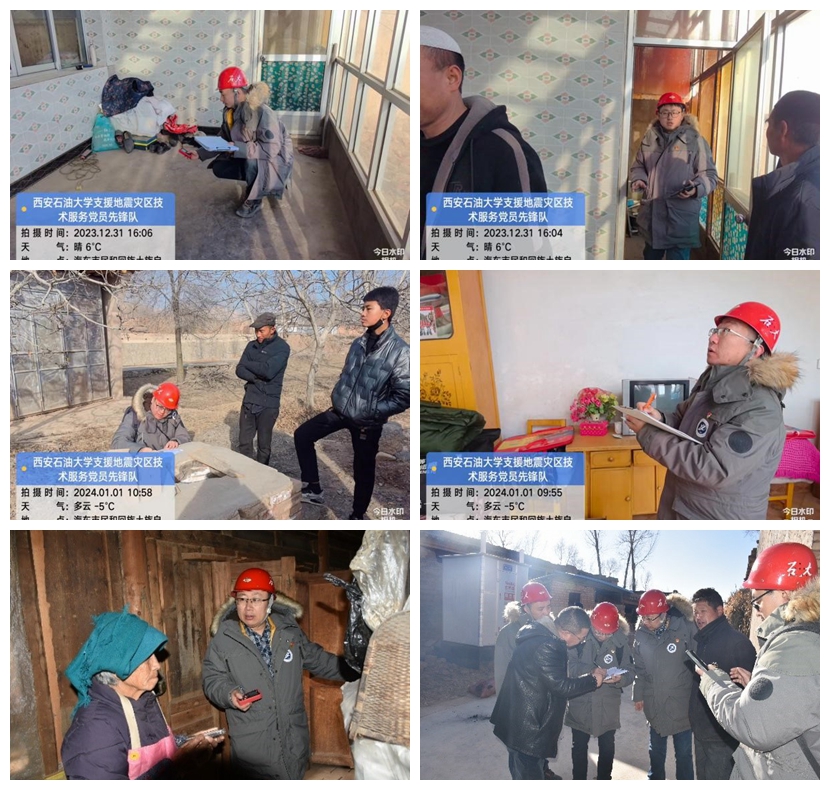 先鋒隊本次前往地震災(zāi)區(qū)的主要工作任務(wù)是對受災(zāi)地區(qū)村民房屋的安全性進(jìn)行鑒定。先鋒隊一行于12月29日晚抵達(dá)青海省民和回族土族自治縣。在駐地,先鋒隊學(xué)習(xí)了青海省住建廳發(fā)布的《甘肅積石山縣6.2級地震青海災(zāi)區(qū)受損房屋建筑及市政基礎(chǔ)設(shè)施安全鑒定工作方案》《地震受損房屋安全鑒定工作手冊》等本次抗震救災(zāi)技術(shù)文件。同時,先鋒隊積極對接當(dāng)?shù)乜拐鹁葹?zāi)指揮部,約定第二天上午見面并對接具體任務(wù)。12月30日清晨,青海省住建廳領(lǐng)導(dǎo)在抗震救災(zāi)指揮部接見先鋒隊一行。先鋒隊代表西安石油大學(xué)表明來意,介紹了人員配置、技術(shù)力量等情況,隨即申領(lǐng)具體任務(wù),部署開展相關(guān)工作。