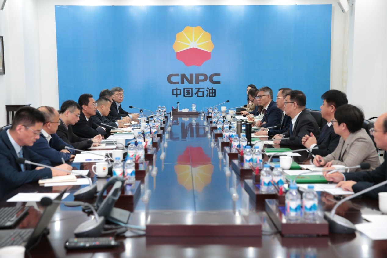 與卡卡耶夫國際油氣大學(xué)校長阿塔馬諾夫等負(fù)責(zé)人座談