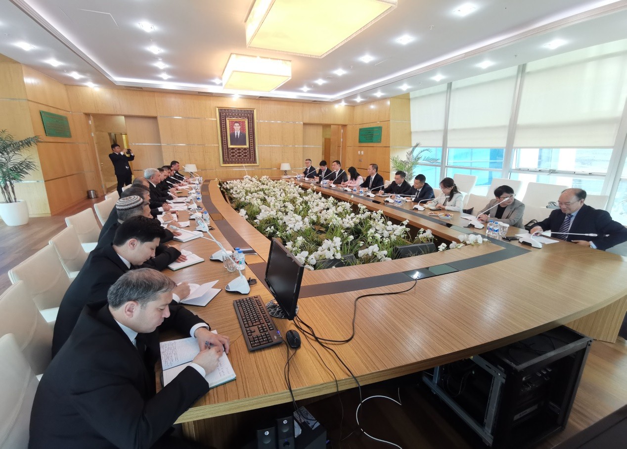 在土庫曼斯坦教育部,教育部副部長阿塔耶夫?阿扎特?穆哈梅多維奇與教育部國際司、高等教育與職業(yè)教育司、科技司司長共同會見了代表團,卡卡耶夫國際油氣大學(xué)教學(xué)副校長瑪梅多夫、科研副校長阿曼尼亞佐夫陪同會談。張榮軍介紹了與卡卡耶夫國際油氣大學(xué)就“魯班工坊”項目洽談情況,重點就“魯班工坊”建設(shè)的重要意義及項目名稱的重要性進行了說明,就“魯班工坊”建設(shè)中需土國教育部協(xié)調(diào)推進的事項進行了闡述,并代表陜西省教育廳就師生赴土交流事宜進行了討論。穆哈梅多維奇對代表團的到訪表示歡迎,重申了建設(shè)“魯班工坊”是落實中土兩國元首達(dá)成的重要共識,希望雙方合作院校充分交流協(xié)商,加快“魯班工坊”建設(shè),加強與中資企業(yè)密切合作,不斷促進土庫曼斯坦青年就業(yè)和國民經(jīng)濟發(fā)展;同時,阿塔耶夫?qū)Υ韴F關(guān)心的問題進行了解答,并表示將積極推進“魯班工坊”建設(shè)事宜。