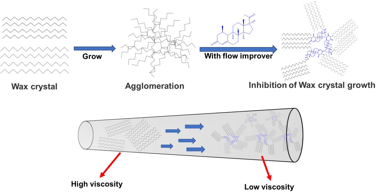 廢棄物的資源化處置是目前全球綠色發(fā)展所需,是應(yīng)對(duì)全球氣候變化、實(shí)現(xiàn)“碳達(dá)峰”“碳中和”目標(biāo)的重要對(duì)策。該課題組前期關(guān)于廢棄物資源化利用的研究工作已取得了系列成果。廢棄一次性口罩中的聚丙烯(Polypropylene)、廢棄泡沫塑料中的聚苯乙烯(Polystyrene)、廢棄有機(jī)玻璃中的聚甲基丙烯酸甲酯(Polymethylmethacrylate)等都與現(xiàn)用原油流動(dòng)性改進(jìn)劑有類似結(jié)構(gòu),因此可作為原油流動(dòng)性改進(jìn)劑的基礎(chǔ)原料,將其改性后加入原油后可以起到降粘和降凝作用(Journal of Cleaner Production, 2022, 358, 131903; Polymers, 2021, 13(15): 2505; Pet.Chem.,2018, 58(1), 85-88; J. Petro. Sci. Eng., 2018,165, 1049-1053。論文鏈接:https://doi.org/10.3390/polym13152505https://doi.org/10.1134/S0965544118010085;https://doi.org/10.1016/j.petrol.2017.12.041)。