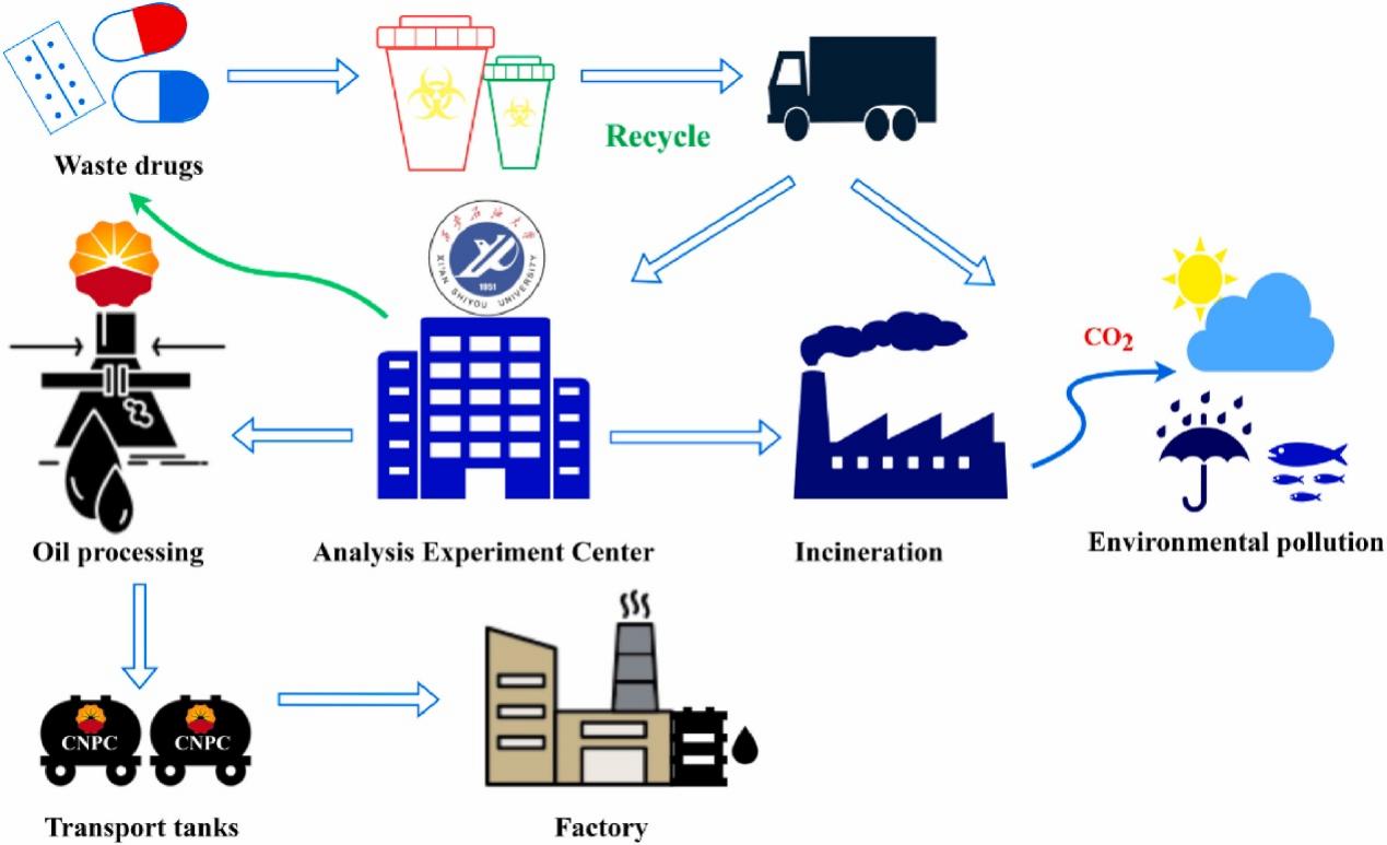 為了進(jìn)一步探討該課題研究成果應(yīng)用的可行性,對(duì)其進(jìn)行成本分析。結(jié)果表明,相比于市售原油流動(dòng)性改進(jìn)劑,使用過(guò)期藥品作為流動(dòng)改進(jìn)劑的成本僅為每噸1062美元-1241美元,其中包括過(guò)期藥品的收集、運(yùn)輸、處理、加工和包裝成本等。更重要的是,傳統(tǒng)的焚燒處理會(huì)增加CO2排放量約15000噸/年,實(shí)現(xiàn)廢棄藥品資源化利用可以將這些節(jié)省的碳排放量與需要企業(yè)進(jìn)行交易,補(bǔ)償原油流動(dòng)改進(jìn)劑的生產(chǎn)。這項(xiàng)工作不僅為過(guò)期藥品資源化利用和低成本原油流動(dòng)改進(jìn)劑的研制提供了方法,也有助于推動(dòng)“碳達(dá)峰”和“碳中和”目標(biāo)的實(shí)現(xiàn)。