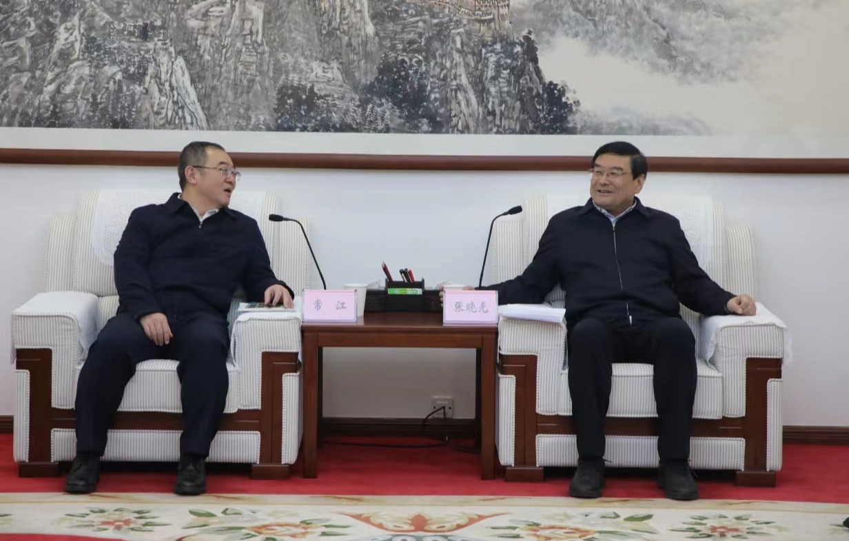 常江向張曉光匯報了學(xué)校近年來發(fā)展情況,特別是第三次黨代會后學(xué)校的目標(biāo)規(guī)劃,表示希望加強(qiáng)校地合作,發(fā)揮學(xué)校人才培養(yǎng)、科學(xué)研究、成果轉(zhuǎn)化、繼續(xù)教育等領(lǐng)域的突出優(yōu)勢,依托榆林豐富的紅色資源和歷史文化資源開展職業(yè)培訓(xùn)和研學(xué)工作,以榆林建設(shè)世界一流高端能源化工基地目標(biāo)為帶動,在榆設(shè)立研究院,開展科技創(chuàng)新和成果轉(zhuǎn)化工作,為榆林國家能源革命創(chuàng)新示范區(qū)建設(shè)提供西石大智力和人才支撐。王進(jìn)富就學(xué)校計劃在榆推進(jìn)產(chǎn)學(xué)研深度融合工作和研究院建設(shè)情況作了匯報交流。