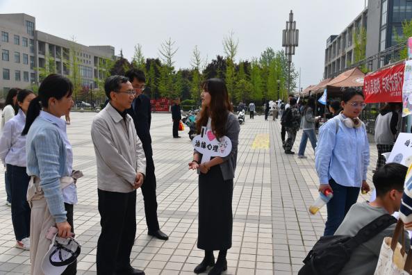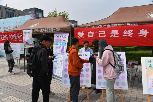 4月7日,陽光柔和,微風(fēng)拂面,恰逢“世界衛(wèi)生日”,我校在鄠邑校區(qū)圖書館南廣場(chǎng)舉辦“油緣會(huì)”戶外心理體驗(yàn)活動(dòng)暨第九屆“陽光護(hù)航”心理育人宣傳季的啟動(dòng)儀式,樹立“人人享健康共同促健康”理念,同時(shí),12個(gè)圍繞“五育并舉促進(jìn)心理健康”主題設(shè)置的活動(dòng)展臺(tái)也是我校作為教育部油緣成長(zhǎng)基地建設(shè)的一次亮相。校黨委副書記張木出席活動(dòng)?;顒?dòng)由學(xué)生工作部(處)(學(xué)生心理成長(zhǎng)指導(dǎo)中心)主辦,校醫(yī)院、地球科學(xué)與工程學(xué)院、電子工程學(xué)院、心理委員聯(lián)合協(xié)會(huì)、心理協(xié)會(huì)共同協(xié)辦。全校500余名師生員工參與體驗(yàn)。