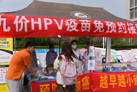 校醫(yī)院組織的“安身穩(wěn)心”展臺(tái)主題為“健康科普體驗(yàn)館”,為同學(xué)們進(jìn)行性知識(shí)、防艾知識(shí)、接種HPV疫苗等科普教育。