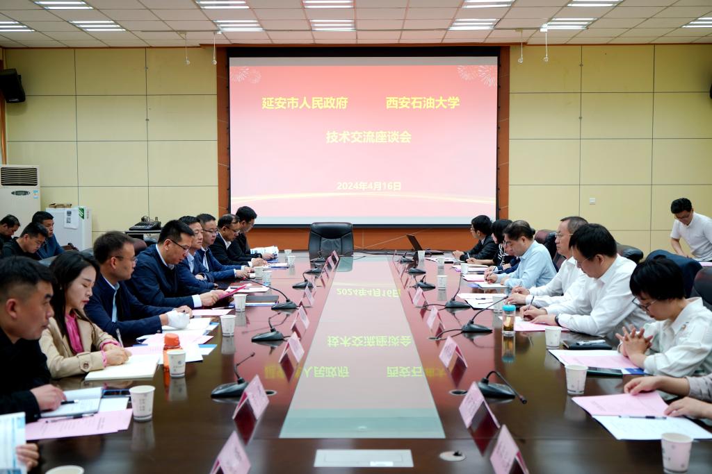 劉濤充分肯定了我校在人才培養(yǎng)、科學研究、科技成果轉(zhuǎn)化等方面取得的成績和對延安地區(qū)經(jīng)濟發(fā)展作出的貢獻,并介紹了近年來延安市在科技創(chuàng)新、成果轉(zhuǎn)化方面的取得的成績和下一步持續(xù)推進成果轉(zhuǎn)化的工作思路。他指出,此次來到西安石油大學開展合作交流,是貫徹落實市委六屆六次全會部署和市委主要領導的指示要求,尋求與學校在科技創(chuàng)新方面的更多合作機遇。他希望,在加強產(chǎn)業(yè)轉(zhuǎn)型合作、聯(lián)合開展技術攻關、促進科技成果轉(zhuǎn)化、聯(lián)合組建創(chuàng)新平臺等方面開展全方位合作,為推動延安市新質(zhì)生產(chǎn)力發(fā)展提供支持。
