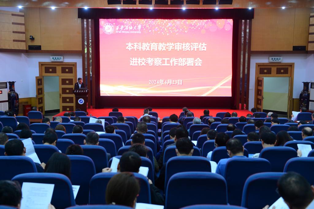 為做好2024年4月29日開始的本科教育教學(xué)審核評(píng)估進(jìn)校評(píng)估考察工作,4月23日上午,學(xué)校在雁塔校區(qū)會(huì)議中心學(xué)術(shù)報(bào)告廳召開本科教育教學(xué)審核評(píng)估進(jìn)校考察工作部署會(huì)。全體校領(lǐng)導(dǎo),校本科教學(xué)督導(dǎo)組組長、副組長,全體處級(jí)干部參加了會(huì)議。會(huì)議由校黨委副書記張木主持。