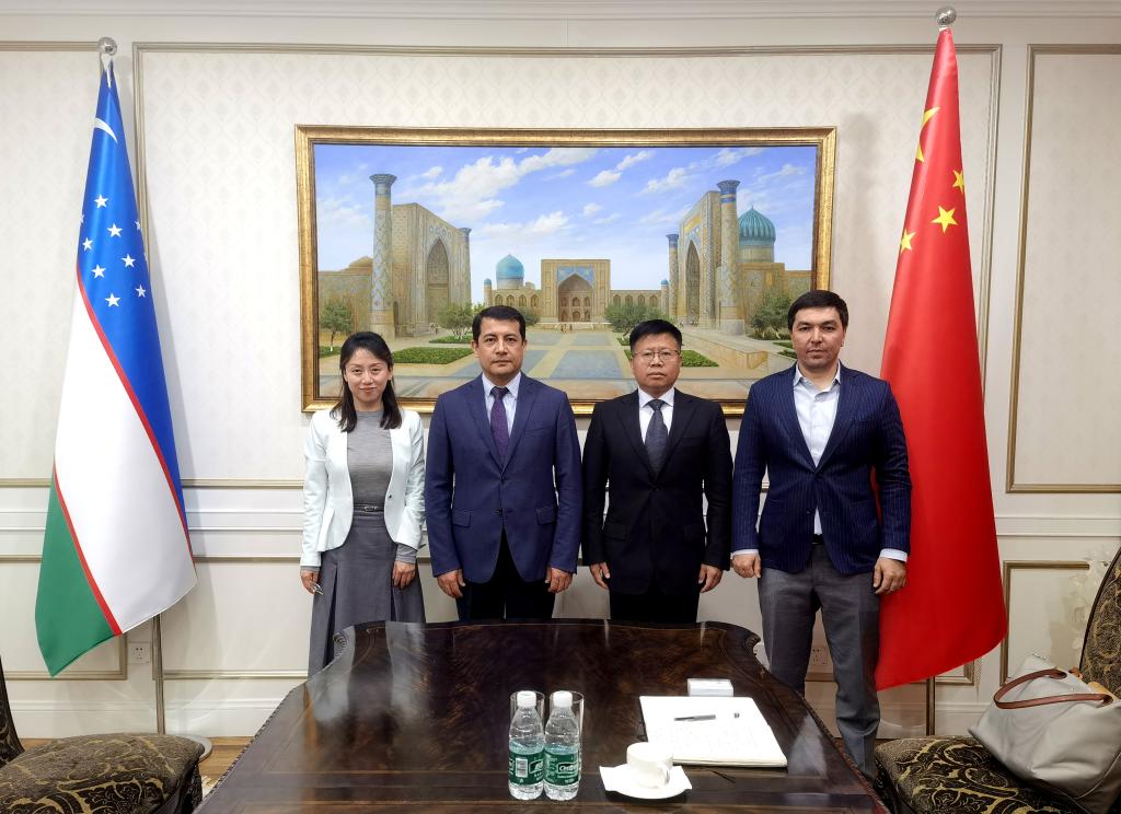 4月24日下午,副校長張驍勇一行赴烏茲別克斯坦駐華大使館訪問并座談。烏茲別克斯坦駐華大使阿爾濟耶夫?法爾霍德、商務參贊依赫提亞爾?尼亞孜穆拉多夫參加會談。