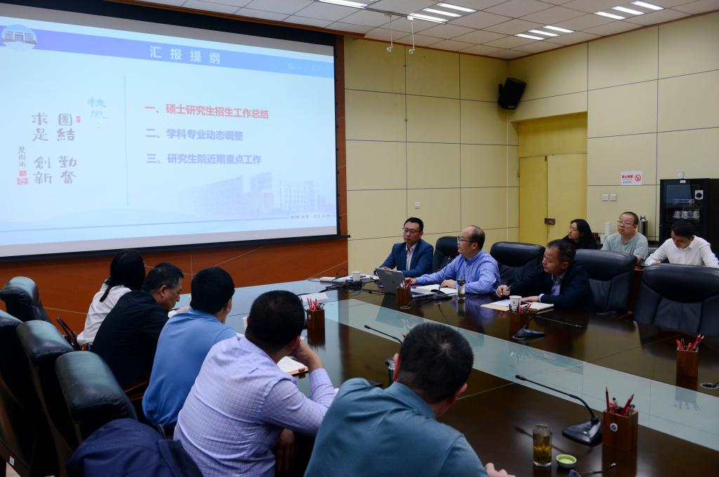 會上,研究生院匯報了有關(guān)工作。會議圍繞學(xué)科專業(yè)優(yōu)化、加強導(dǎo)師隊伍建設(shè)、提高研究生生源質(zhì)量和培養(yǎng)質(zhì)量進行了研討交流。