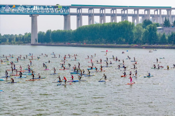 據(jù)悉,本次賽事在黃河陜州區(qū)段水域舉行,由國家體育總局水上運動管理中心、河南省體育局、省體育總會、三門峽市人民政府主辦,三門峽市體育局和陜州區(qū)政府承辦,設(shè)置了公開組、大師組、卡胡納組、高校組及青少年組等多個組別。競賽涵蓋男女個人賽、個人200米競速賽、200米趴板劃水賽、8公里比賽以及團體200米接力、200米龍板賽等多個項目,為槳板愛好者提供擊水黃河、浪遏飛板的平臺。共有來自全國各地的700名槳板賽選手和體育運動愛好者相聚碧水黃河,共同體驗沿黃生態(tài)與水上運動的激情碰撞,感受“黃河明珠、天鵝之城”與“體育強國、健康中國”的激昂融合。