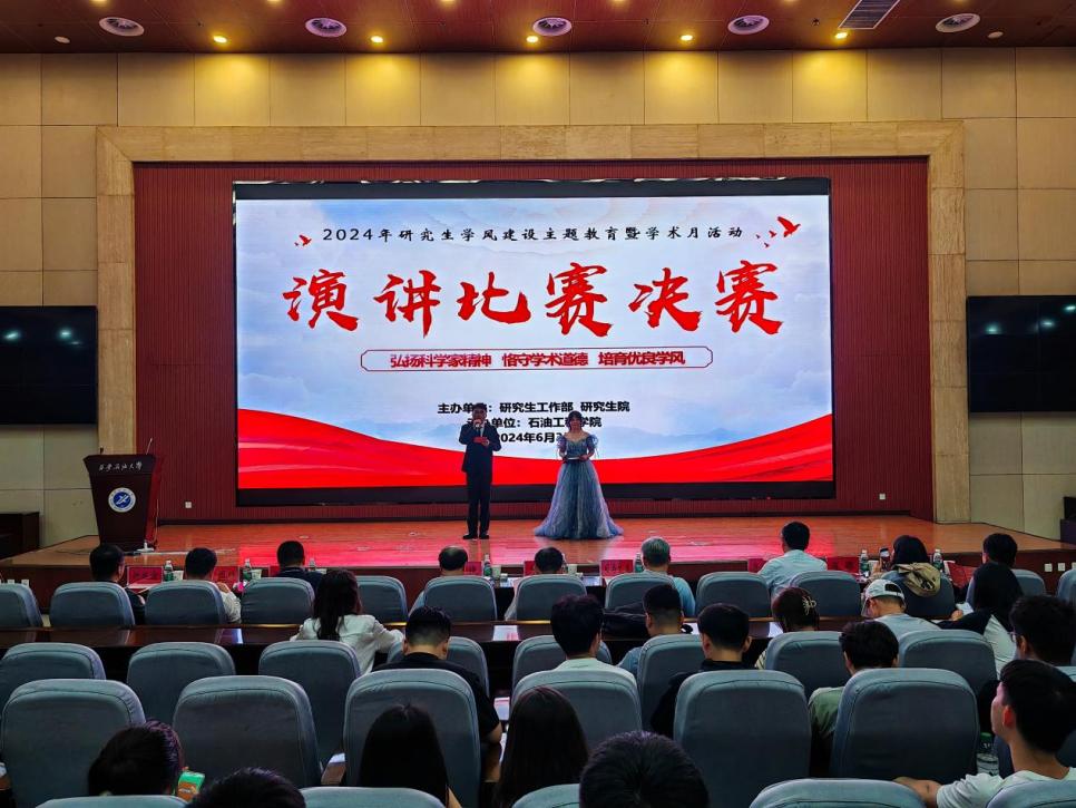 6月3日晚,由研究生工作部、研究生院主辦,石油工程學(xué)院承辦的研究生學(xué)風(fēng)建設(shè)主題教育暨學(xué)術(shù)月活動(dòng)之“弘揚(yáng)科學(xué)家精神恪守學(xué)術(shù)道德培育優(yōu)良學(xué)風(fēng)”主題演講比賽決賽在鄠邑校區(qū)弘石學(xué)術(shù)報(bào)告廳舉辦。校黨委副書記張木出席并講話。研究生工作部、研究生院,以及石油工程學(xué)院、地球科學(xué)與工程學(xué)院、電子工程學(xué)院、機(jī)械工程學(xué)院、計(jì)算機(jī)學(xué)院、土木工程學(xué)院、理學(xué)院等有關(guān)負(fù)責(zé)同志,各學(xué)院研究生輔導(dǎo)員和研究生代表共計(jì)300余人參加活動(dòng)。