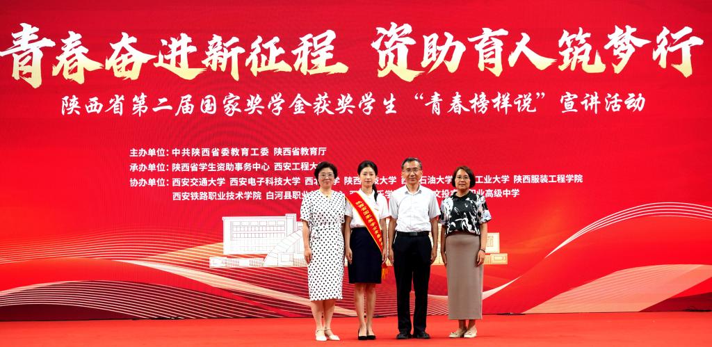 活動(dòng)現(xiàn)場,省委教育工委、省教育廳總會(huì)計(jì)師劉宏恩宣讀陜西省第二屆國家獎(jiǎng)學(xué)金“青春榜樣說”成員名單和提名人選名單。教育部全國學(xué)生資助管理中心副主任涂義才、省委教育工委委員、省教育廳副廳長何玉麒為“青春榜樣說”成員頒發(fā)聘書。