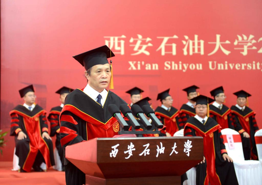 副校長楊戰(zhàn)社宣讀了《西安石油大學(xué)關(guān)于授予李茂等1462名研究生博士、碩士學(xué)位的決議》。