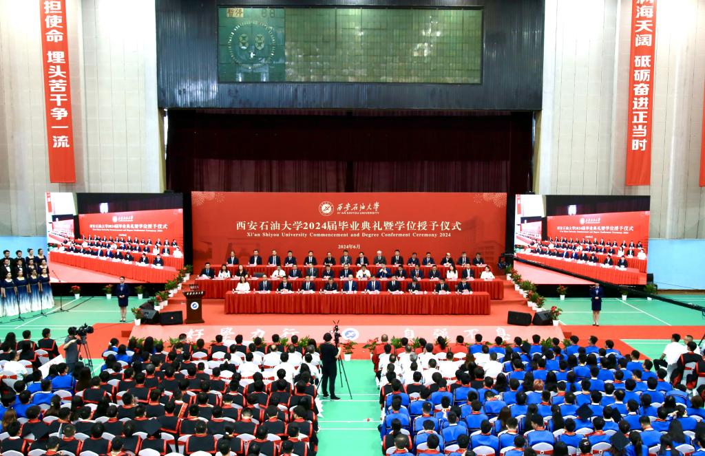 6月20日上午,西安石油大學(xué)2024屆畢業(yè)典禮暨學(xué)位授予儀式在雁塔校區(qū)體育館舉行。校黨政領(lǐng)導(dǎo)常江、王進(jìn)富、張木、王輝強(qiáng)、程永清、楊戰(zhàn)社、蘇文甫、張驍勇、趙健、樊曉民出席典禮。相關(guān)職能部門、各院(系)負(fù)責(zé)人,教師代表、校友代表,2024屆畢業(yè)生及家長3000余人來到典禮現(xiàn)場,共同見證這一重要時刻。典禮由校黨委副書記張木主持。