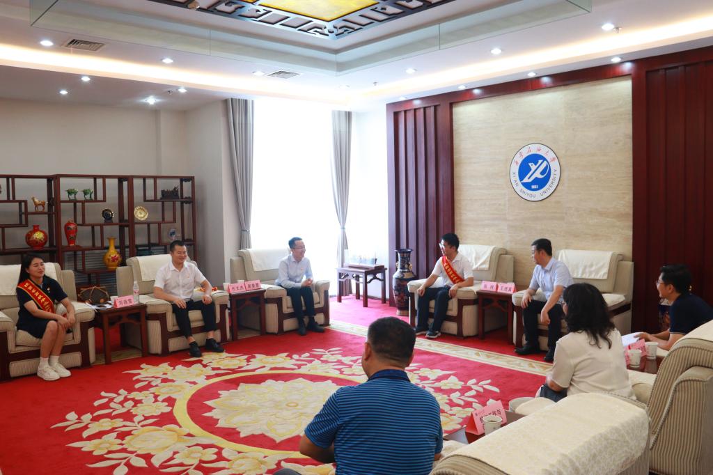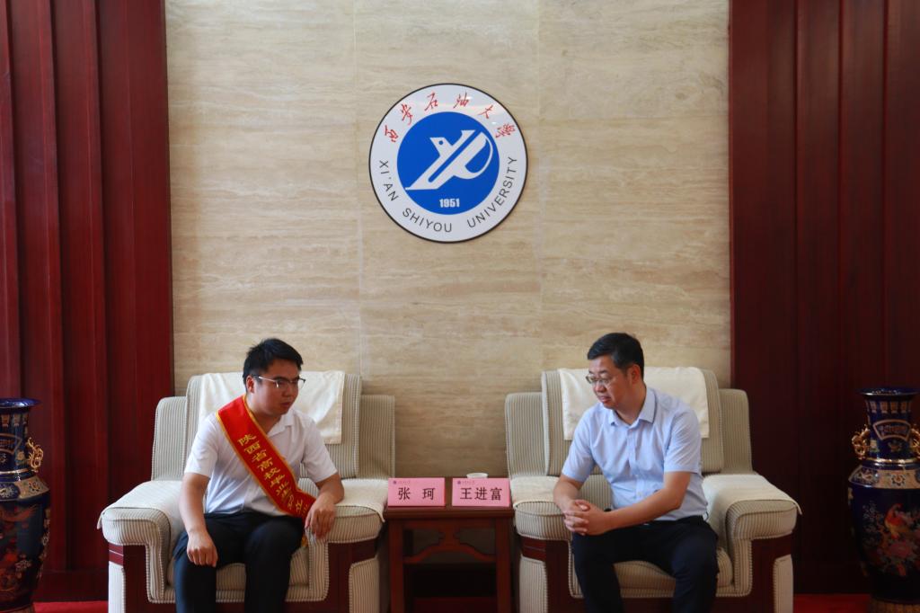 會(huì)前,校長王進(jìn)富親切會(huì)見了報(bào)告團(tuán)一行。王進(jìn)富對5位優(yōu)秀畢業(yè)生代表來校作報(bào)告表示歡迎和感謝,對他們扎根基層、報(bào)效祖國、服務(wù)人民的先進(jìn)事跡表示贊揚(yáng)與肯定。他指出,畢業(yè)生建功立業(yè)先進(jìn)事跡報(bào)告活動(dòng)的舉辦,就是以先進(jìn)榜樣為力量,引領(lǐng)廣大學(xué)生樹立正確的學(xué)習(xí)觀、就業(yè)觀和人生觀,立志做有理想、敢擔(dān)當(dāng)、能吃苦、肯奮斗的新時(shí)代好青年。他表示,學(xué)校將以此次分享會(huì)為契機(jī),充分挖掘?qū)W校優(yōu)秀校友先進(jìn)事跡,引導(dǎo)廣大同學(xué)向身邊的榜樣和先進(jìn)看齊,賡續(xù)紅色血脈,弘揚(yáng)鐵人精神,在新時(shí)代的廣闊天地綻放青春之花,同時(shí)也希望校友張珂(我校石工院2019屆本科畢業(yè)生)能夠一如既往地支持母校發(fā)展。
