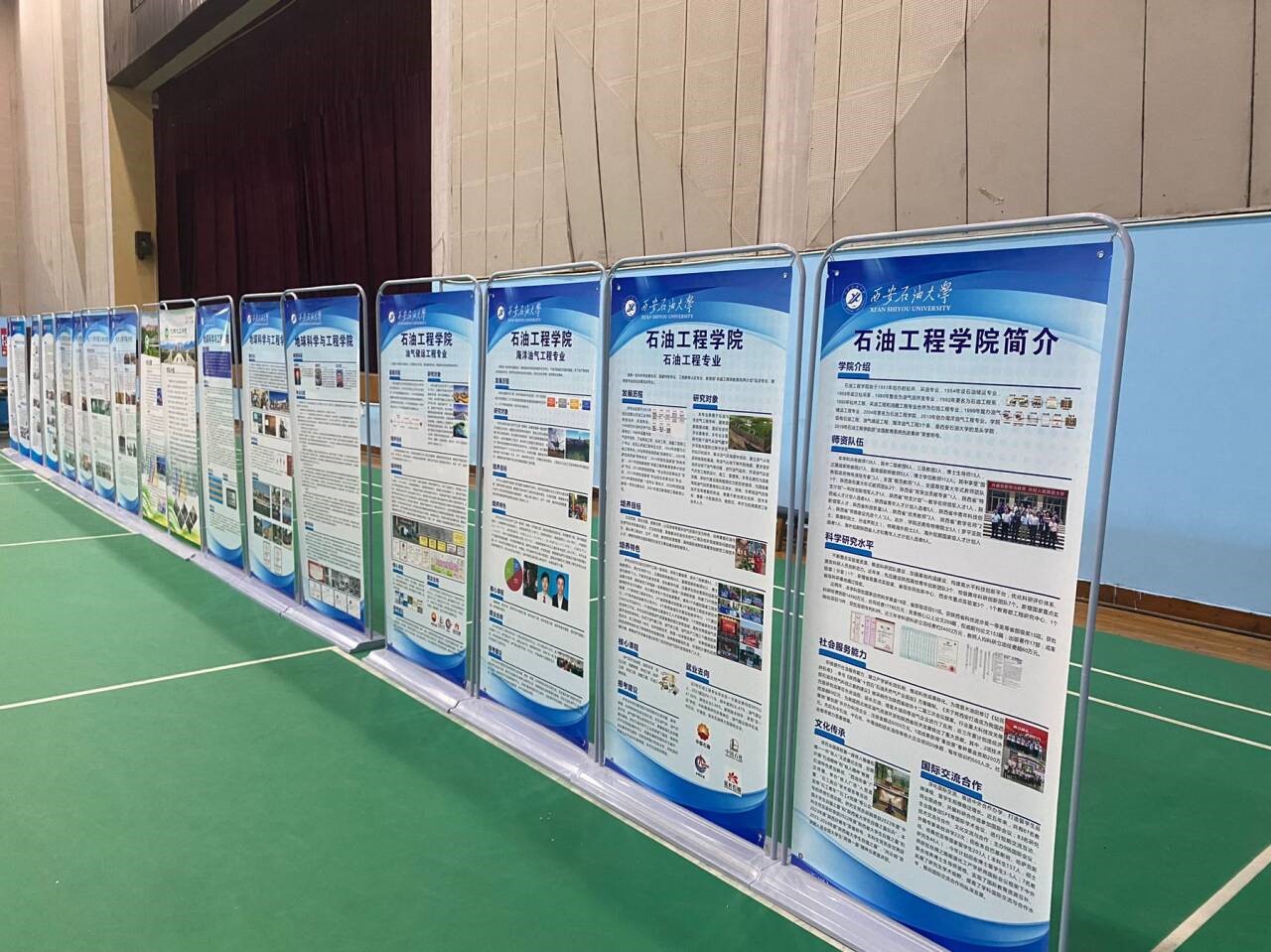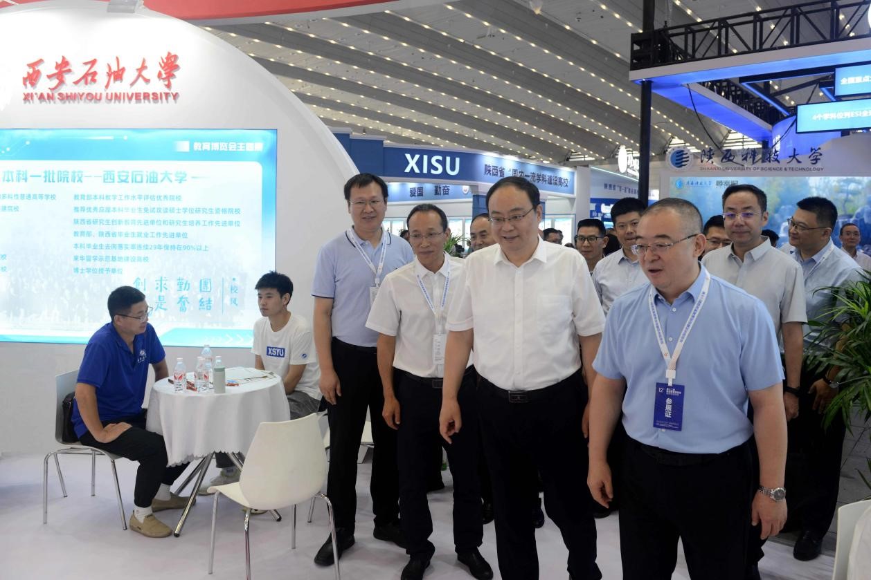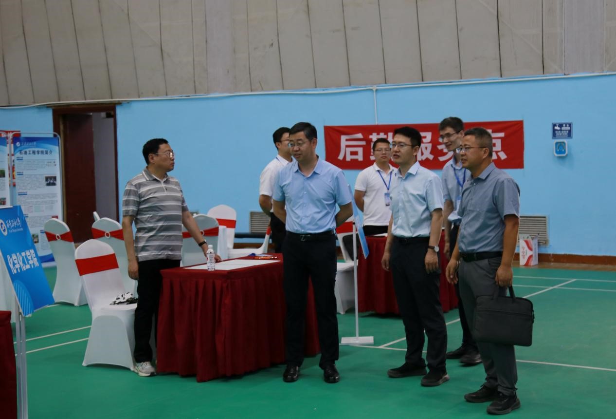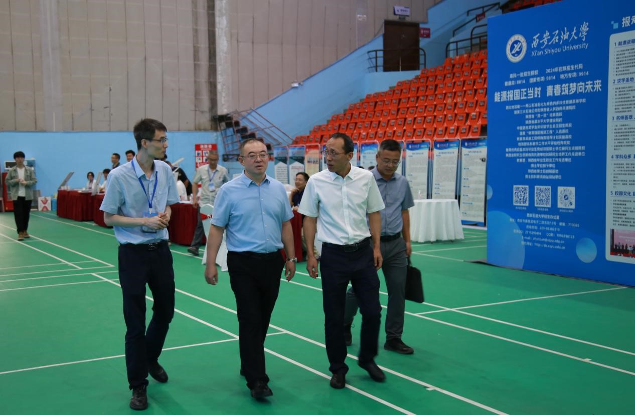 6月24日至26日,學校宣傳部、教務(wù)處、科研處、研究生院、馬克思主義學院以及各院(系)專家教授與招生志愿者共同參加第十二屆陜西教育博覽會暨招生咨詢會。學校展臺搭建以石油紅為主色調(diào),突出石油石化特色,中心位置石油樹象征石油噴薄如飛瀑涌泉,發(fā)展的動力源源不斷,精心陳列原油、巖心、礦物標本、連續(xù)油管作業(yè)車模型,展示學校流體動力式雙重聲波防蠟裝置等5項科技成果及研究生科技創(chuàng)新成果。省委教育工委副書記、教育廳廳長王樹聲在校領(lǐng)導常江、張君濤的陪同下蒞臨我校展位視察工作。