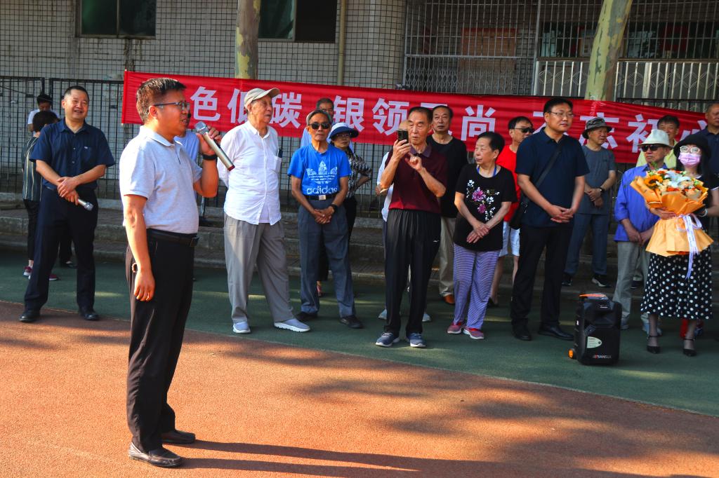 離退休黨總支書記、離退休工作處處長(zhǎng)茍金虎宣讀了比賽規(guī)則。比賽規(guī)則是80周歲及以上年齡段的老同志繞田徑場(chǎng)一周,限時(shí)10分鐘以內(nèi)完成。70至79周歲的老同志男、女分組,繞田徑場(chǎng)兩周,在15分鐘以內(nèi)完成。70周歲以下的老同志男、女分組,繞田徑場(chǎng)三周,在20分鐘內(nèi)完成。