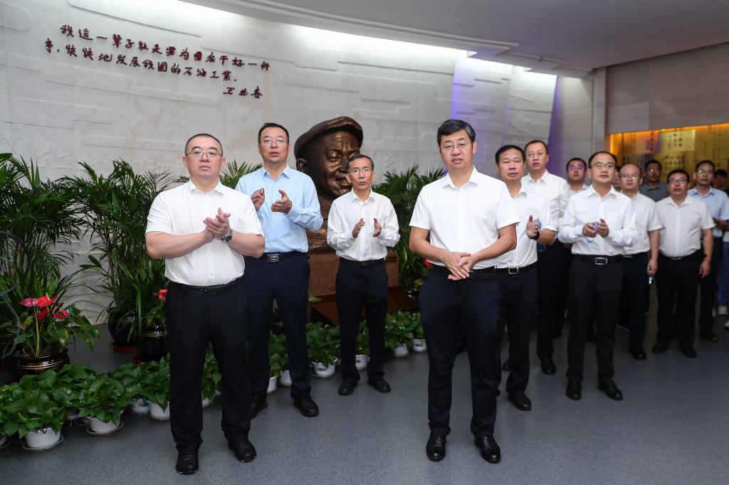 8月6日上午,常江、王進(jìn)富一行參觀了大慶油田鐵人王進(jìn)喜紀(jì)念館,聆聽(tīng)鐵人故事講解,通過(guò)參觀銹跡斑斑的文物、鮮活的老照片、寫(xiě)滿文字的筆記本等陳列品,物見(jiàn)鐵人本色、感受鐵人精神。大慶鉆探工程有限公司籌備組副組長(zhǎng)、鉆探工程公司總經(jīng)理艾鑫全程陪同。